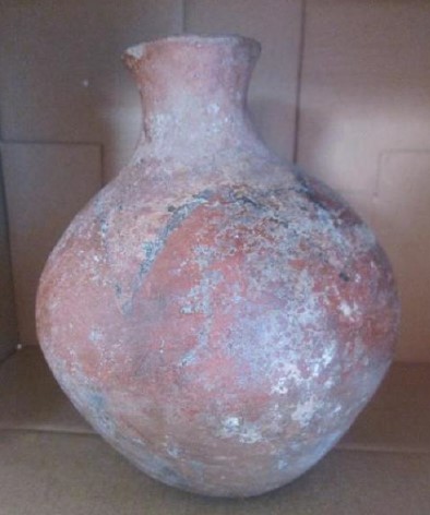 Cerâmica, d.C 1,476 – d.C 1,532, jarro arredondado hemisférico, apresenta desenhos triangulares com policromia.