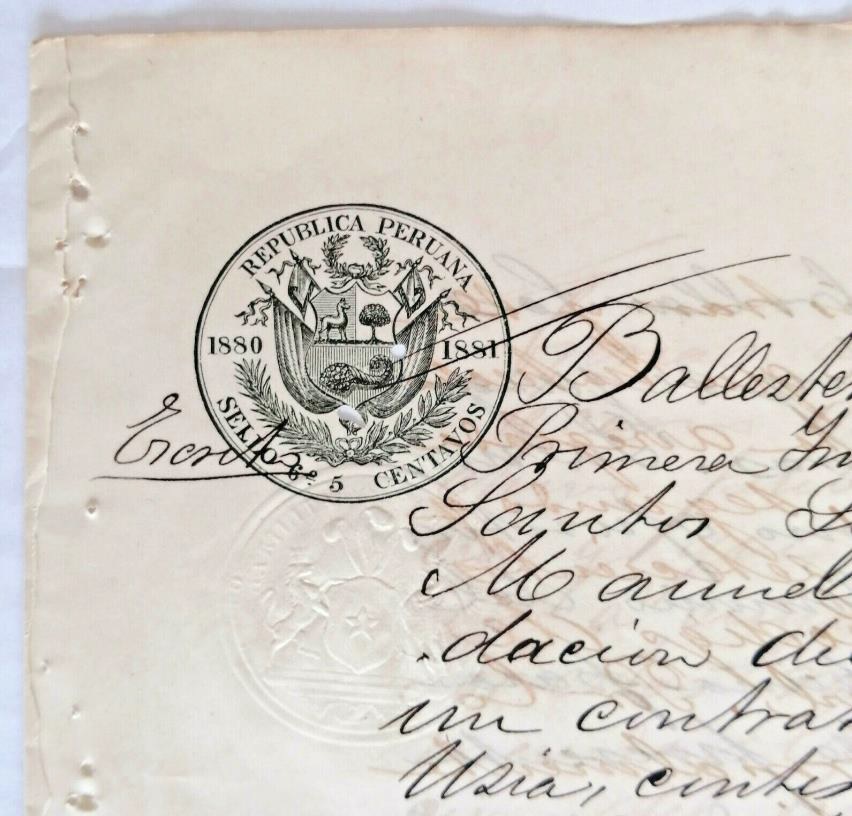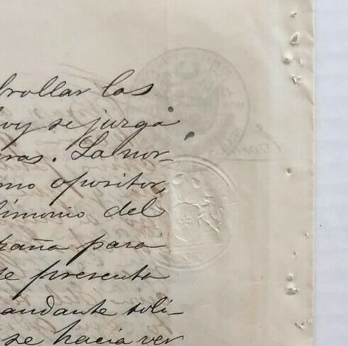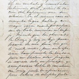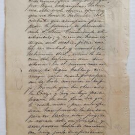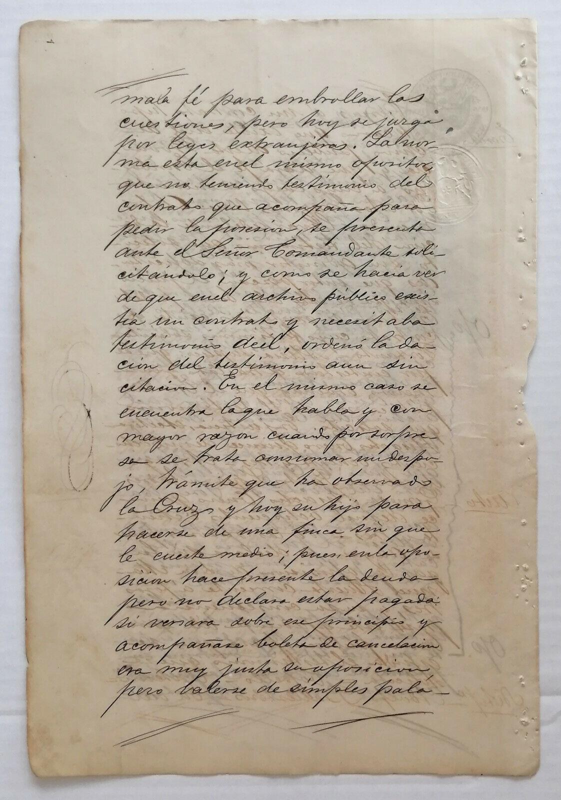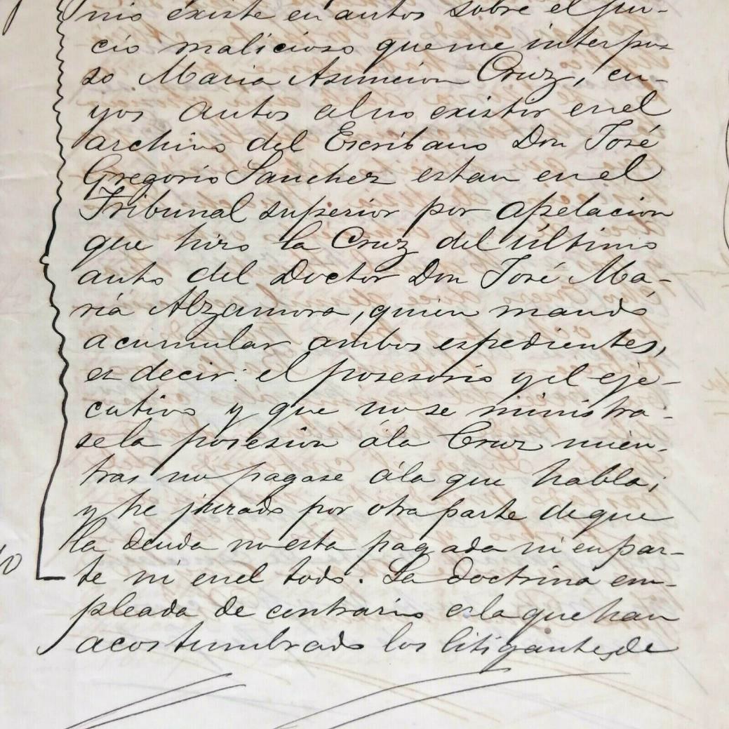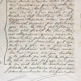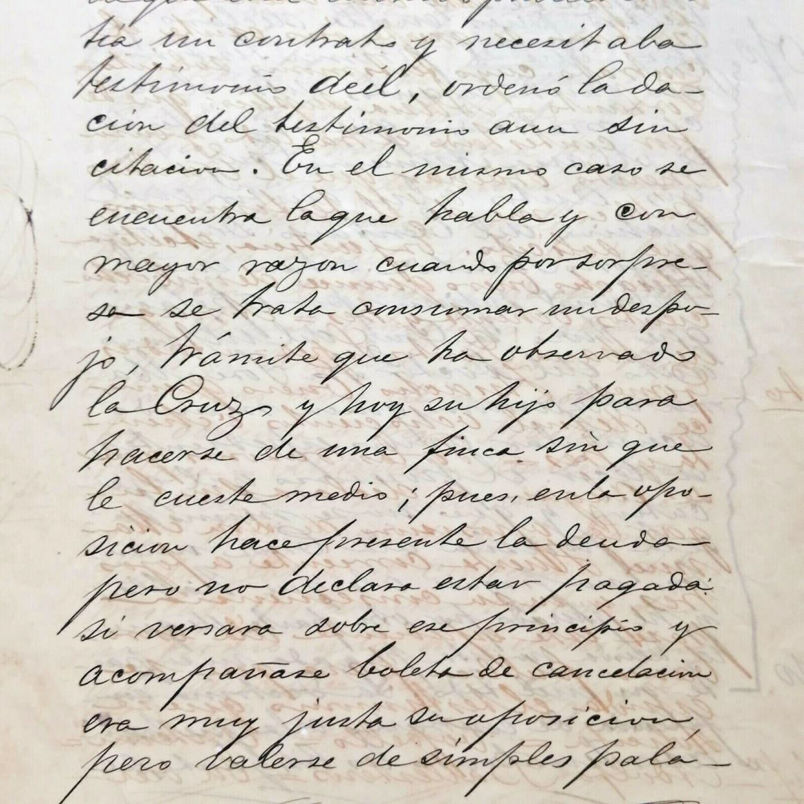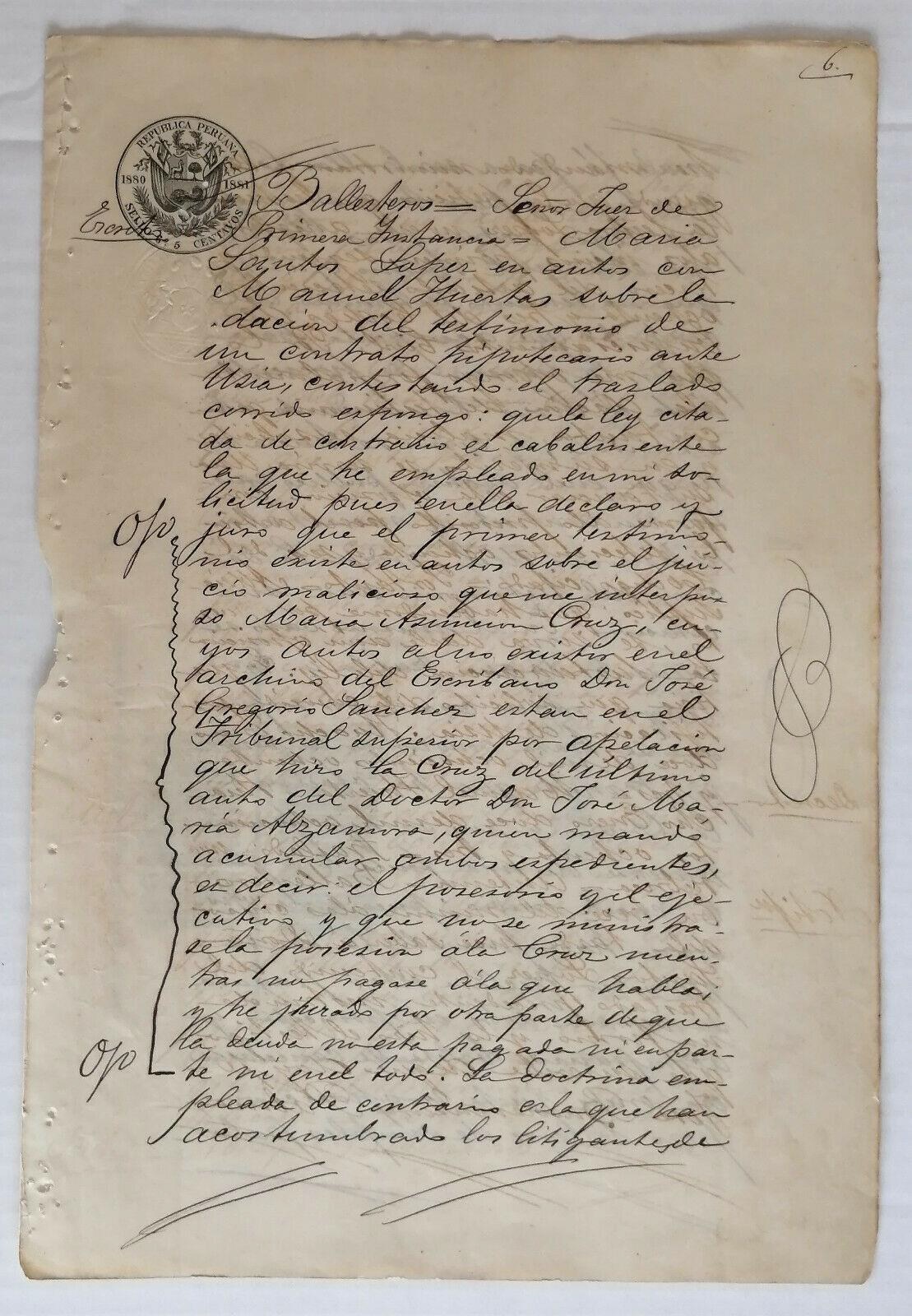 Manuscrito, 1880-1881, documento em resposta à transferência por dação à María Santos López, em autos com Manuel Huertas, sobre a contestação de patrimônio.