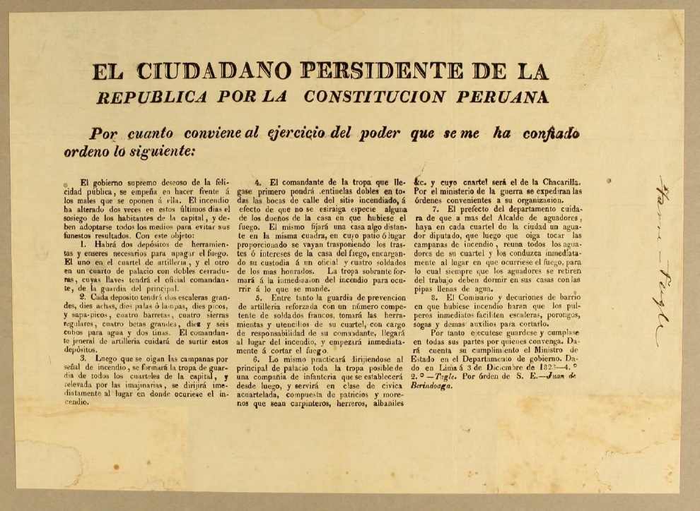 Anexo E-mail – 06-01-2022 – Foto – 2 Baixar TítuloDocumentoDescriçãoImpressão, 1823, Decreto em nome de José Bernardo Tagle e Juan de Berindoaga para medidas de atuação em casos de incêndio.Alerta293-2021Data1823PaísPeruLocalPalácio da Justiça, Arquivo Geral da Nação (Lima)CategoriaArquivísticoTipologia do bem culturalDocumento Normativo (Decreto - Medidas de atuação em casos de incêndio)
