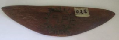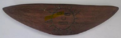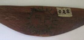Madeira, d.C 1,476 – d.C 1,532, objeto triangular com desenho na parte posterior em forma de sol.